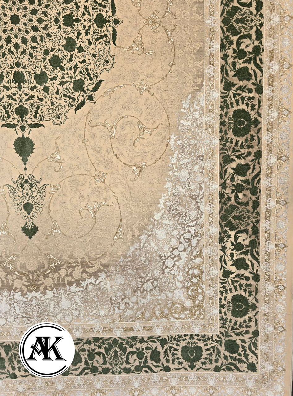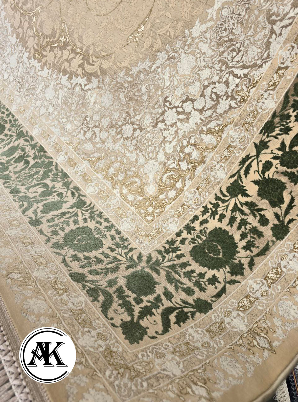 فرش 1200 شانه آبالون بژ سبز گلبرجسته